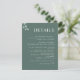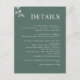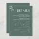 Ett kort för detaljbilaga med djupgående grönt för lodrät med bröllop med alla textavsnitt som kan anpassas, så att du kan lägga till all information som du vill. Utformning med modern typografi och minimal stil med subtila, handdragna botaniska detaljer. Om det behövs kan du markera "redigera med hjälp av verktyg" och ändra textpositionen, storlek och/eller stil. Samma kortdesign finns även i motsatt färg, vit med grönt och i blekens grönt. Utformningsdelen av vår "Modern Elegant Typography Grönt Bröllop"-samling med olika samordningsprodukter tillgängliga. Besök hela samlingen på: https://www.zazzle.com/collections/modern_elegant_typography_green_wedding-119450360134999957