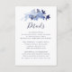 Kortet elegant Navy Blue Blommigt Foliage Modern Script Bröllop Information Enclosure Card.