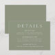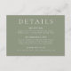 Specifikationskort för Bröllop för elegant och Modern Sage Grönt Se matchande inbjudan och papper nedan