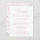 Fyll i din bröllop-svit med vår Elegant Dusty Ro Chinoiserie Victorian Blommigt bröllop informationskort. Den här designen innehåller "Detaljer" som visas i ett dammigt kalligrafiskt skript för rosa i ro som kontrasterar mot en vit bakgrund. Anpassa det formella informationskortet för bröllop med viktiga bröllop-detaljer som t.ex. din bröllop-plats, hotellrum, anvisningar och bröllop webbplats. Kortets baksida har ett kinesiskt blommönster som inspirerats av ro rosa.