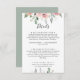 Kortet för den elegant rosa blommigt bröllop är perfekt för ett modernt bröllop. Utformningen har hand om rosa ro och människor med grönt och grått löv, vilket inspirerar naturskönheten.