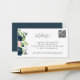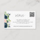 Kort för bröllopsinbjudan med QR CODE TO WEBSITE med en chic, marin blå och rosa, blommigt gräns. Ett enkelt sätt att informera dina gäster om din webbplats, om osa online eller om din ceremoni och mottagning.