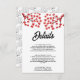 Den här eleganten är ett kort för bröllopsdetaljer i bohag är perfekt för ett modernt höstbröllop. Den enkla designen har röd löv med eleganten svart och röd typografi på vit bakgrund.