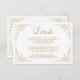 Den här vintage-eleganten-inspirerade, formella miljökortet för bröllop-detaljer innehåller texten i guld färgad-skript och serif typsnitt, som är framtagen av en känslig vintage-guld-motiv. Ram upprepas i motsatt riktning.