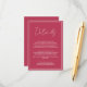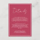 Kortet för omslutning i bröllop är perfekten till att alla detaljer i bröllop i stil. Den minsta designen har en elegant-typografi på en livfull magenta-bakgrund, och skapar den ett vackert tillägg till din speciella dag. Med det här anpassadet får du all information som dina gäster behöver, inklusive logi, transport och bröllop webbplats. Den enkla designen kan anpassas i vilken färg som helst, vilket gör att du kan skapa en personlig för din stora dag. Med sin sofistikering och mångsidighet är det här perfekten för bröllopen av för snyggten och den moderna bruden och brudgummen.