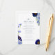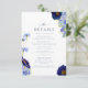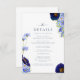Vacker elegant blått, färgat sommarblommor i marinblått, kornrosblått, blått dammiga blått, lila, grönt och gult, detaljerat djurutrymmeskort för bröllop inklusive ceremoni och mottagning i bröllop, logi och webbplatsuppgifter. Blomillustrationer är kornblommor, poppies, cosmos och glöm mig inte. Mall som är lätt att använda om du vill lägga till all bröllop-information med ett modernt typografiskt skript för elegant. Perfekt för en unik boho botanical navy blue themed sommar eller vår bröllop. Ett unikt originalverk av konstnären Catherine Sweetman. Matchning av stationära bröllop och tillgängliga tillbehör