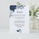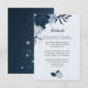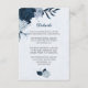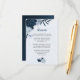 Elegant dammiga blåblommor och marinblommor med vackert marint blått löv botaniskt detaljkort. På kortet är tillbaka: ömtåliga blå lögner mot marinbakningen. Uppgifterna om glitter simuleras