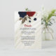 Elegant röd och marin blomma med guld bronze löv på botaniskt detaljkort för marmorbakgrund.