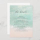 Kortet för den romska kustens temade bröllop innehåller vackra abstrakt med turkos, mousserande havsvåg och strandbakgrund, överst med snyggt och information om typsnittshändelser för elegant, modernt och enkelt, underbart för sandstrasbröllop, tropiskt destinationsbröllop, kusthav, temed bröllop. Visa alla matchande delar i samlingen.