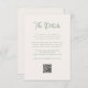 Dessa enkla och snyggt, bröllop-gästinformationshölje för elfenbenskräm/inmatningskort har vismisk skripttypografi för grönt av vintage stil. Du kan använda dessa kort för köranvisningar, mottagnings- eller transport-information, hotell- eller inkvarteringsinformation och alla andra bröllop-uppgifter som du behöver dina gäster för att veta. Innehåller även en skannerbar QR-kod.