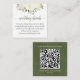 Detta visitkort är designat för att ge dina gäster information, information och/eller OSA online på bröllop webbplats. Den innehåller en QR-kod för anpassadet som är enkel att söka igenom, samt utrymme för URL:en för webbplatsen och en kort-anteckning. Utformningen har en vacker vattenfärgsdesign för boho-chicen med handmålad vattenfärg ro & blommar i skugga av elfenben, vitt och grädde, tillsammans med sage grönt av eukalyptus löv och trädgårdsgrey.