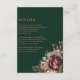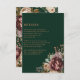 Förbättra din bröllop-kontorssvit med vår Emerald Grönt Blommigt Guld Bröllop-informationskort, ett lyxigt tillägg som ser till att dina gäster får all information de behöver för din speciella dag. Det här krävande kortet har en bakgrund i grönten som framträder i riken och som är försedd med starka motiv för blommigten i skuggor av burgundi, maron, elfenben och beröring av guld, skapande ett fantastiskt visuellt mittstycke.