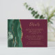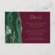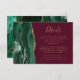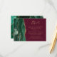 Den lämnat kant i eleganten har ett kort för modern detaljrikedom i bröllop och har en framväxande grönt vattenfärgsagat i gräns som trimmas med faux guld glitter. Texten finns i handskriftsskript i guld-färgaden och typsnitt på en burgundisk bakgrund. Den omvända sidan har en matchande grönt och guld agate-design.