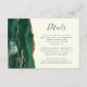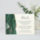 Den lämnat kant i eleganten har ett kort för modern detaljrikedom i bröllop och har en framväxande grönt vattenfärgsagat i gräns som trimmas med faux guld glitter. Texten finns i handskriftsskript för emerald grönt och typsnitt på en elfenbensbakgrund. Den omvända sidan har en matchande grönt och guld agate-design.