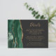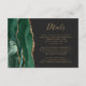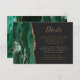 Den lämnat kant i eleganten har ett kort för modern detaljrikedom i bröllop och har en framväxande grönt vattenfärgsagat i gräns som trimmas med faux guld glitter. Texten finns i handskriftsskript för guld färgad och teckensnitt för kopieringsteckensnitt på en svart bakgrund. Den omvända sidan har en matchande grönt och guld agate-design.