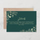 Snyggt framträder grönt- och guld bröllop-informationskort med accenter för elegant blommigt. Det här inmatningskortet är perfekt för att dela extra bröllop-information, t.ex. din webbplats i bröllop, OSA, mottagningsinformation, anvisningar, platser eller andra viktiga anteckningar till gästerna. Koordinerar utmärkt med matchande emerald grönt och guld bröllopssviten.