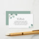 Kortet för elegant bröllop-detaljer med en enkel utformning med vattenfärgad, färgad eukalyptus grey i det övre lämnat hörnet och i det nedre hörnet av högerna. Baksidan är en matchande skuggning av medelstor grönt. Det här botaniska boendekortet bröllop med modern tvist är perfekt för vår eller sommar bröllop. Använda dessa djurutrymmeskort för att ge anvisningar och andra viktiga uppgifter om bröllop som dina gäster kan behöva känna till, t.ex. hotellrum, parkering, pendelinformation osv.