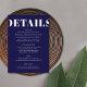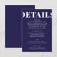 Tittar du ett elegant, ett modernt bröllop-detaljkort? Titta på vårt enkla blå, feta, moderna, Bröllop-minneskort. Med fet kalligrafi som tillför lite sofistikering ger det här marinblått detaljkort för bröllop ett rent, enkelt utseende. Detta minimalistiskt detaljkort för bröllop har en modern tvist som är bunden att fånga dem med öga för subtil sofistikering.