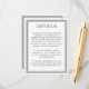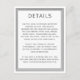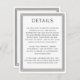 Den här enkla typiska utformningen av bröllop-kortet finns i en mängd olika färger för att matcha bröllop färg. Den har en contemporary med tre rader gräns i djupt kol-grått och en exempeltextmall för att anpassa informationen till dina gäster i bröllop, t.ex. hotellrum, speciella hotelltaxor, köranvisningar, möten eller andra schemalagda evenemang, bröllop webbplats eller annan önskad information. Anpassa texten med önskad information.