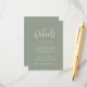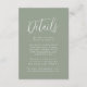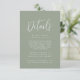Modern bröllop-kort med information om bröllop som visas med vit text med sidbakgrund i grönten. Lägg till information som hotellrum, mottagningsinformation, bröllop webbplats osv. Designad att samordna med vår samling Simple Script bröllop.