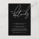 Minimalistiskt svartvitt och vitskript med typsnitt i Bröllop - Klassiskt utslag i en Mörk som estetiskt. Öka ditt bröllop-meddelande med våra moderna svarta och vita skripttypografkort, ett tidlöst val för din speciella dag. De här detaljkorten kombinerar sömlöst inslag för klassisk design och elegant med en mörk estetisk, vilket skapar en slående kontrast som anger en formell och sofistikerad ton. Det svarta och vita färg-systemets enkelhet och den vita typografens elegans gör dessa detaljkort till ett perfekt för par som vill ha ett enkelt men otrevligt påstående. Välj den här inbjudan om du vill att kärlek ska visa upp en klassisk och modern fusion