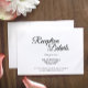 Detta enkla kort för mottagningsdetaljer för svart och vitt-kalligrafi ger en lyx för eleganten, men samtidigt en modernt känsla för både ett minimalistiskt och mer traditionellt eller formellt bröllop. Avslappnadens kalligrafi ger en antika känsla, medan utformningen av klassens neutralt kan kombineras med alla unika aspekter av giftermål firande.