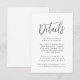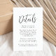 Modern bröllop-kort med information om bröllop som visas i svart text med vit bakgrund. Lägg till information som hotellrum, mottagningsinformation, bröllop webbplats osv. Designad att samordna med vår samling Simple Script bröllop.