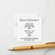 söt- och inmatningskort för att informera gästerna om din bokning och skyttelinformation i svartvitt. Anpassa med din information och brudgummens namn och datum på baksidan.