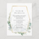 Gästkort för vild av skogsvodland eucalyptus herbarium bröllop med guld-geometrisk ram designad för att snabbt och enkelt kunna anpassas till dina händelsespecifikationer.