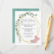 Gästkort för trendigets geometriska eukalyptus greenery och rosa ros bröllop med guld-geometriska ram och myntvattenfärg tvättar omvänt.