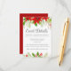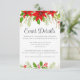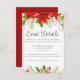 Det här klassiska evenemanget "röd jul" i bröllop har skarpa poinsettiska blommor med hollybär och grönt löv överst. En festlig och skarp design i rött skript för en helgdag-mottagning. Ljusa och glada inkapslingskort.
