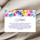 Kortet för den färgstarka blommigten bröllop-detaljinformation är perfekten till ditt bröllopsinbjudningspaket, vilket gör att du kan ge gästerna all viktig information de behöver om din speciella dag. Med en vacker vattenfärgsutformning och anpassade blommigt, är det här kostym i vilket bröllop som helst stil. Det är det perfekt sättet att göra era inbjudningar mer personliga. Du kan inkludera information om logi, mottagningsplats, register i bröllop och andra viktiga uppgifter som dina gäster behöver.