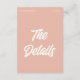 Information om bröllop-gästinformation om enkel och snyggt återfyllnadsfärg. Med funkyns blek rosa bakgrund och gråvit textlayout. All information är anpassade som webbplats, transport, logi. Ta den tillsammans med andra produkter från denna klassade hand som tillverkades av retro bröllop-svit.