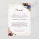 Detta geometriska detaljförslutningskort guld glitter bröllop är perfekt för ett modernt bröllop. Utformningen har handritad vattenfärgsfärg, lila, marin, , burg, marinblommor, grönt och guld löv som adorerar en elegant geometrisk ram.