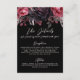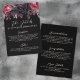 Specifikationskort för svart och röd gotik Bröllop. Den här moody och romantiska designen har en solid svart bakgrund med en dramatisk arrangemang av svart och röd ros överst på framsidan för en mörk elegant. Texten är formaterad i benvit typsnitt med hjälp av en blandning av flytande skript och klassisk serif-typografi, som ge den till ett förfinat men gotininspirerat utseende. Det här kortet är perfekt för att inkludera din bröllopsmottagningsinformation, klänningskod, logi, transport info och webbplats. Layouten är helt anpassade, så du kan uppdatera all text så att den matchar din händelse. Ett djärvt och unikt sätt att viktig bröllop-information med gäster, detta tryckta djurutrymmeskort ger en romantisk gotisk vib till din bröllop-svit.