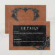 Transport dina gäster till en värld av mörk, elegans med vårt vintage gothic bröllop-informationskort. Den djupa, rosta bakgrunden till åldrasen anger scenen för en slående kontrast, eftersom fetstil, vit text kommer från komplicerade svarta textrutor. I höjdpunkten på inbjudan fångas det centrala i mystik och romantik av en tredimensionell gothisk gräns med en regal svart korv. Baksidan är försedd med två sammanflätade vindruvor av svart ro som subtilt bildar ett hjärta runt två omfamnande ravens, vilket tillför en aning dramatisk allure. Släpp magin och ange tonen för en oförglömlig bröllopsdag. Kortet är en del av Gothic Black Raven & Black Ro Bröllop Suite skapat av enbart Farmhouse Press.