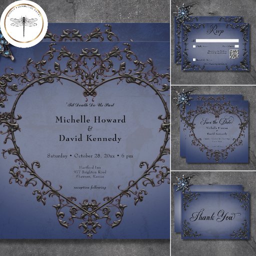 Gothic Black & Blue Filigree Heart WeddingDesignad av Kathe Santillo