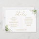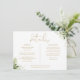 Ett elegant informationskort med detaljer om grönt bröllop med personlig information, stilfull guldsatsning och era namn och bröllopsdatum på baksidan. Designad av Thisisnotme©
