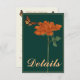 Ett underbart visitkort för elfenben för att komplettera din stationära bröllop-dator, oavsett om det är Boho, rustik chic eller modern. Skogshuset är förskönat av en enda perfekt bränd orange Dahlia och en grönt av marinfjäril plus en gräns i guld. På baksidan finns mallar för rum, händelser och webbplatsen bröllop. En annan trevlig biet för er bröllop-stationär.