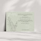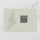 Ett enkelt och modernt detaljkort med handdragna eukalyptus-sprickor på en lätt grönt. Elegantens skript och klassiskt serif typsnitt. Låt gästen hitta mer information på bröllop webbplats och kom ihåg att lägga till högerna till QR-koden på baksidan av kortet. Perfekt för naturinspirerat eller minimalistiskt bröllop med romantisk beröring.