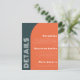 Ett modernt färg-kort för detaljriksrum i bröllop med sprickor med blått grönt, orange och bågform i. Designad med färgstark abstrakt inslag och fet typsnitt ge en funky groovy boho retro vibe perfekt för vår, sommar eller fall bröllop. Även färg i bågformerna kan anpassas.