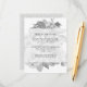 Designad för samordning med vår Vintage Blommigt bröllop samling i svartvitt. Rik och elegant i nyanser av grått med skarp vit och svart rik. Vårt bröllopskort för Blommigt i Vintage har en bakgrund av blommor med svart och vit vattenfärg och ett rent vitt överlägg. Byt ut exempeltexten mot nyckel i bröllop firande. Vilka uppgifter ska ingå i en bröllopsinbjudan? Ta hänsyn till information som hotellrum, gruppkoder, transport, anvisningar, välkomstmottagningsinformation och bröllop webbplats-URL. Du kan till och med överföra en karta till motsatt sida med funktionen Anpassa.