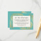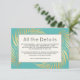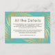 Det här moderna inneslutningskortet för öar-stil bröllop är designat för att ge gästerna i bröllop viktig information om ditt stora evenemang. Den har en svällande tropisk handflatan-frond i skuggande faux guld över en kontrasterande västindiska blå bakgrund. Exempeltext ingår i den lättförståeliga textmall som du kan anpassa med önskad använda.