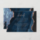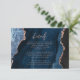 Den här eleganten har ett kort för detaljer i bröllop-höljet en marinblå bakgrundsbild med blått vattenfärgsagat som trimmas med faux ro guld glitter. Titeln visas i handskriftsskript, med anpassadet nedan i ro rosa-mönsterteckensnitt. Den omvända sidan har en matchande marin blå utformning och ro guld-agatdesign.
