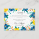 Specifikationskort för Elegant bröllop med blå Blommigt i gult. viktiga uppgifter om stil med hjälp av detta-kort för elegant blue and gult blommigt bröllop. Det här kortet är designat för att komplettera vår matchande inbjudningssvit och har delikat vattenfärgsblommor i mjuk pastellblå och solig gult, perfekt för vår eller sommar-bröllop. Använda till att informera gästerna om logi, transport eller andra viktiga evenemangsuppgifter. Anpassa enkelt dina bröllop-uppgifter så att du får ett sömlöst, samordnat utseende. Koppla ihop det med andra föremål i samlingen Elegant Blue och Gult Blommigt Bröllop för ett sammanhängande och sofistikerat firande. Kontakta mig gärna om du vill ha fler anpassningar på mypaperlove2021@gmail.com