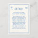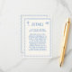 Kort för Fransk av skript i vintage: Upptäck magiken på din Firande-enhet med den speciella dagen med vårt Vågrät för skript i Vintage Fransk, med samma exekverande handskriven stil och handritad kreativitet som våra inbjudningar. De här detaljkorten för vågrät är ett utmärkt komplement till din Fransk på bröllop. Varje detaljkort fungerar som en arbetsyta för dig att historien om firande med nåd och stil. Det handskrivna teckensnittet exuderar en luft av gammal charm och intimitet och bjuder in dina gäster att slå sig ned i den fantastiska berättelsen om kärlek. De här detaljkorten innehåller delikata handritade skribbletter och subtila blåa anteckningar som påminner om motiv för vintagens Fransk och transporterar dina gäster till en era av romantik och förfining. Varje inslag, från det invecklade mönster till de visuella illustrationerna, tillför en liten aning stollig och sofistikering till ert bröllop-kontor. Den dammiga och mörk blått paletten i färg förorsakar detaljkortet med en antika elegans som framkallar nostalgi från vintage Fransk-manusskript och kärlek brev. Det är en nyck som talar om tidlös romantik, mystik och en gammal tids allure, perfekt som ett komplement till designens handgjorda estetik. Vår Vintage Fransk Scribbles-Vågrät Information Cards är utskriven på en högkvalitativ kardstock med en avslutat av projektionsyta och är inte lyx och sofistikerad. Genom att ägna uppmärksamhet åt detaljer och engagemang för kvalitet ser du till att alla aspekter av ert bröllop-kontor återspeglar skönheten och betydelsen av er kärlek-historia. Med vårt kort för information om Fransken Vintage Scribbles för Vågrät kan du den komplicerade informationen om din speciella dag med elegans och nåd och bjuda in dina gäster att resa med kärlek och firande med dig.