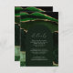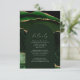 Den här designen har en mörk grönt båge på en bakgrund med vattenfärgagat grönt för jägare som trimmas med guld faux-folie. "Detaljer" i ord visas i det elegant vita kalligrafiskriptet. Lägg till bröllop-informationen i vit kursiv stil.