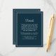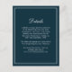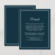Det här enkla elegant bröllop-kortet i marinblått är designat för att ge dina inbjudna gäster information om din bröllopsdag. En exempeltextmall ingår för att anpassa med all information som du vill bifoga dina bröllopsinbjudningar. Använda det för att tillhandahålla hotellogi, bröllop register eller webben, speciella sammankomster, transport info, köranvisningar osv. Du kan också ändra flottbakgrunden färg i detta inneslutningskort med vilken annan färg som helst.