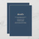 Det här "klassiskt Blue Modern Type Bröllop Details-kortet" ger dina gäster all nödvändig information som de behöver för din speciella dag. Det är det idealiska valet för par som värdesätter både stil och funktionalitet, och skapar det enklare än någonsin för dina gäster att planera sin närvaro i firande. Ordna idag!