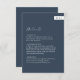 Specifikationskort för klassiskt formblått monogram skript i Bröllop för typiskt marint Navy-skript.